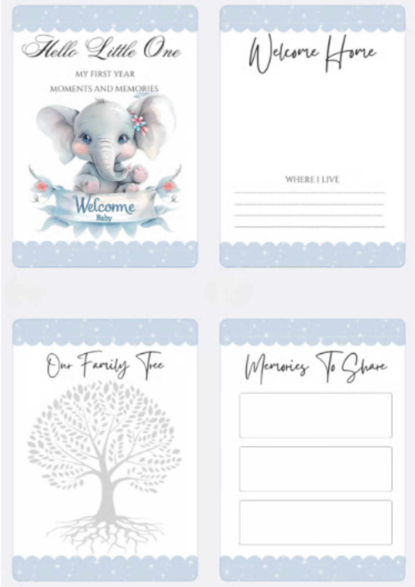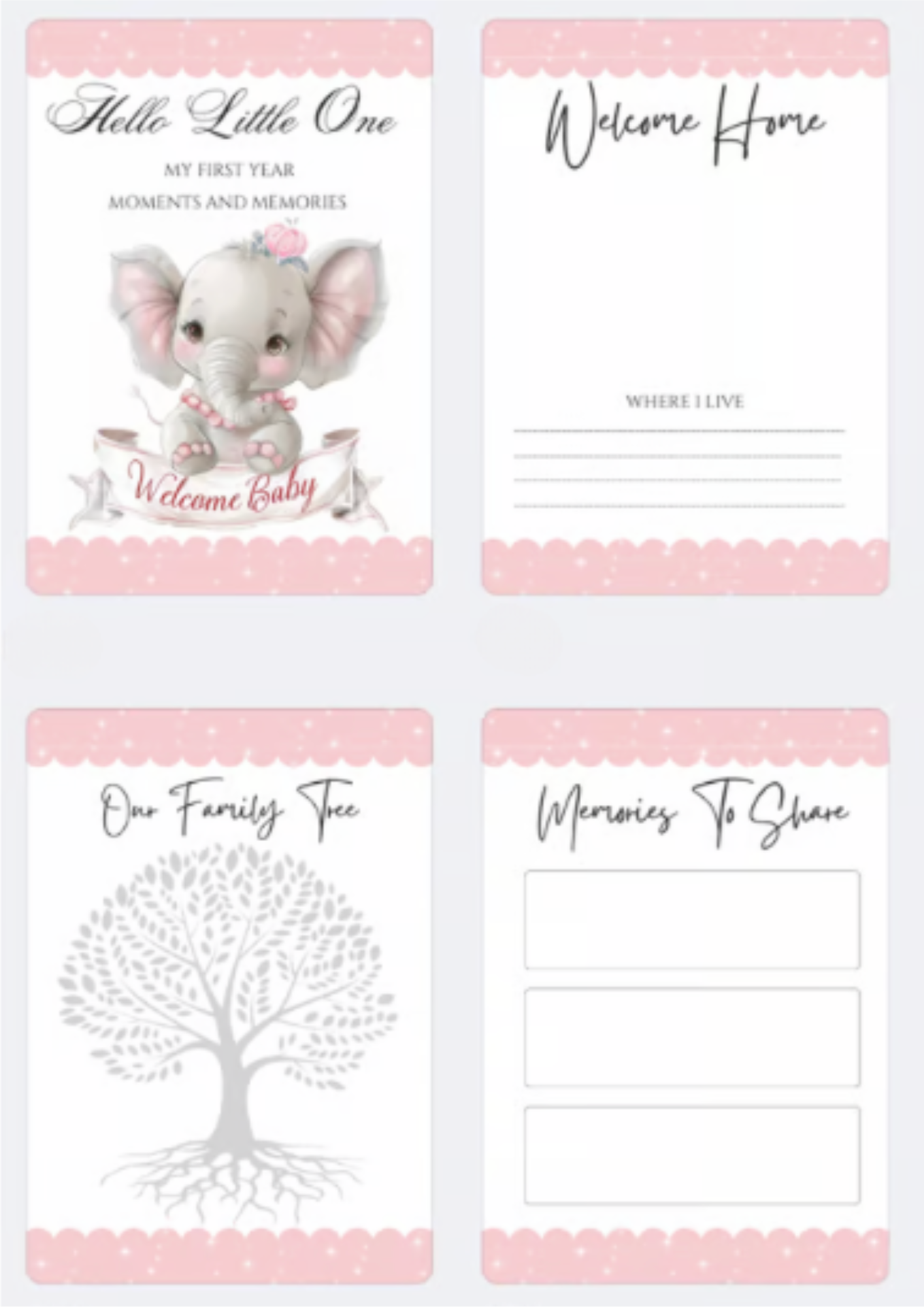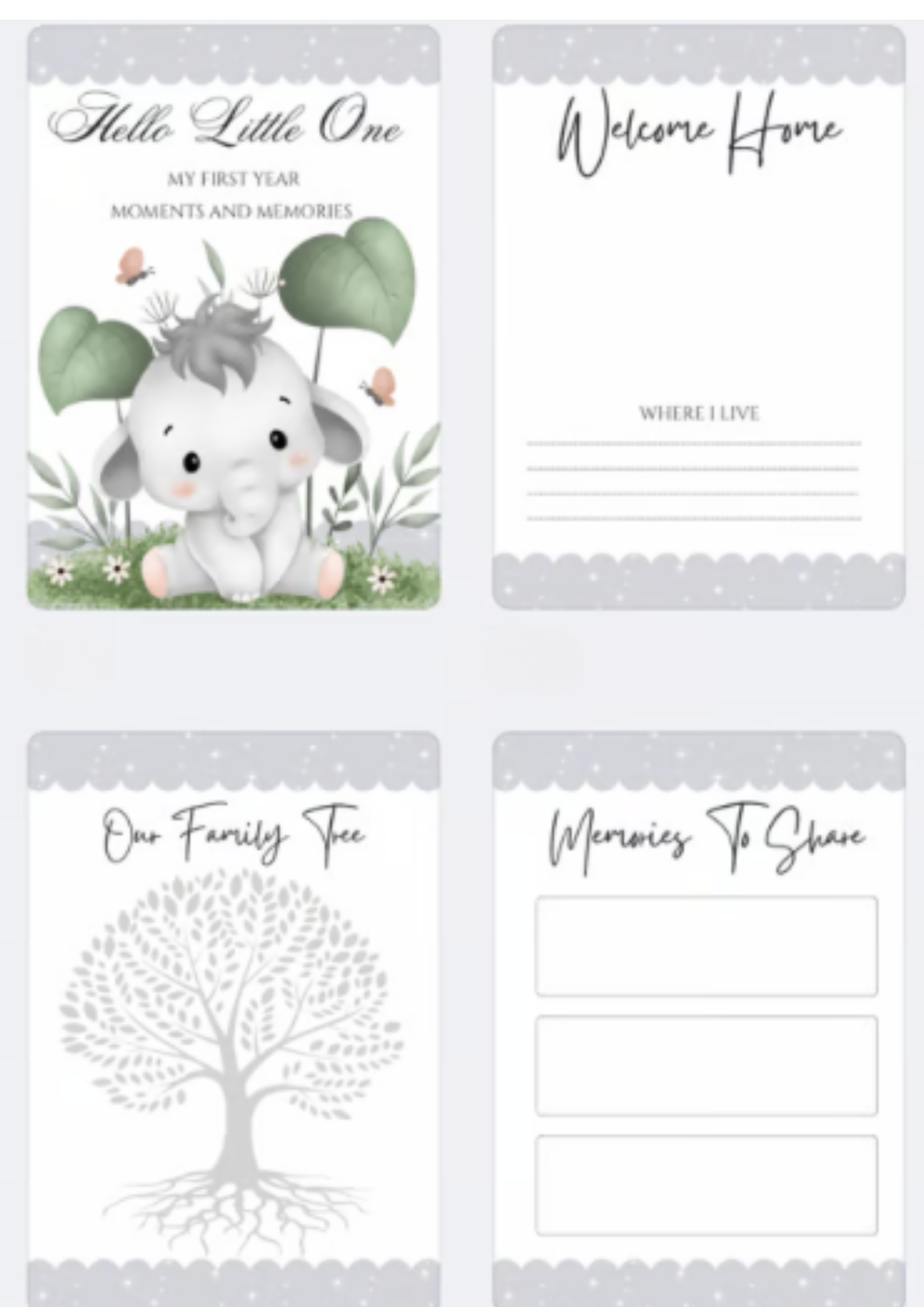 We all love capturing those first precious moments and what better way to by creating a first year book from the start of their journey. Spaces to add photos and write in milestones/Statistics