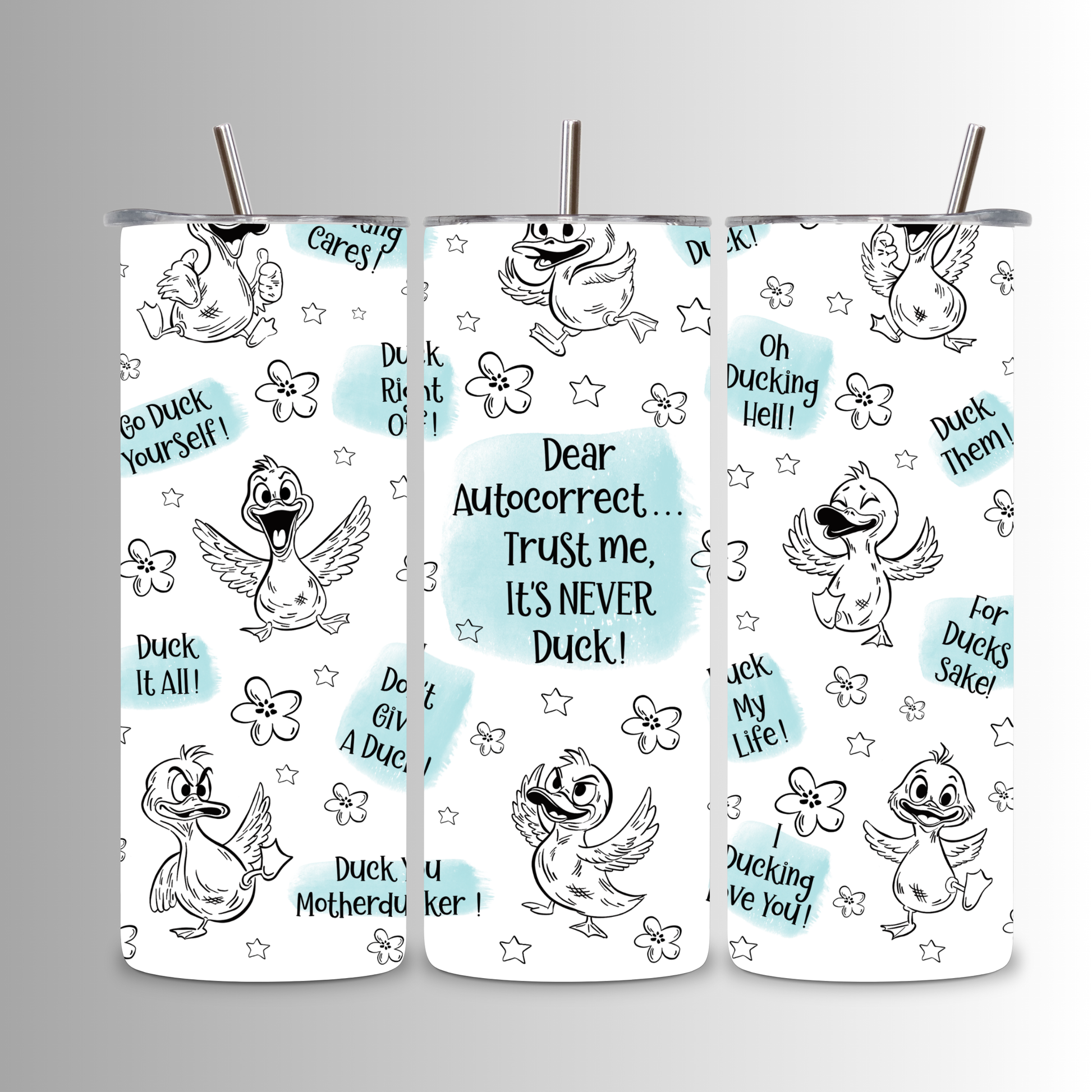 “Dear Autocorrect… Trust me, it’s NEVER Duck!” with playful duck illustrations.Made from high-quality stainless steel, this tumbler is double-wall insulated to keep your drinks hot or cold for hours at a time. Perfect for everyday use at home, work, or on the go.